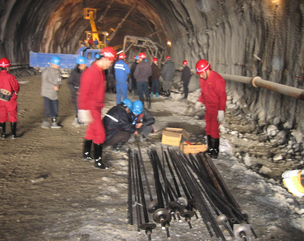 圖強(qiáng)低預(yù)應(yīng)力錨桿施工簡單方便,在鄭萬高鐵的隧道工程應(yīng)用中優(yōu)化的鋼拱架設(shè)置;在錦屏二級水電站高埋深巖爆威脅起到了極大作用;在京張高鐵八達(dá)嶺大跨度車站多硐室地下車站支護(hù)中極大的保證了安全性;如今正在國家重點(diǎn)工程川藏鐵路做為復(fù)雜地質(zhì)條件隧道系統(tǒng)主動支護(hù)發(fā)揮重大的作用。
